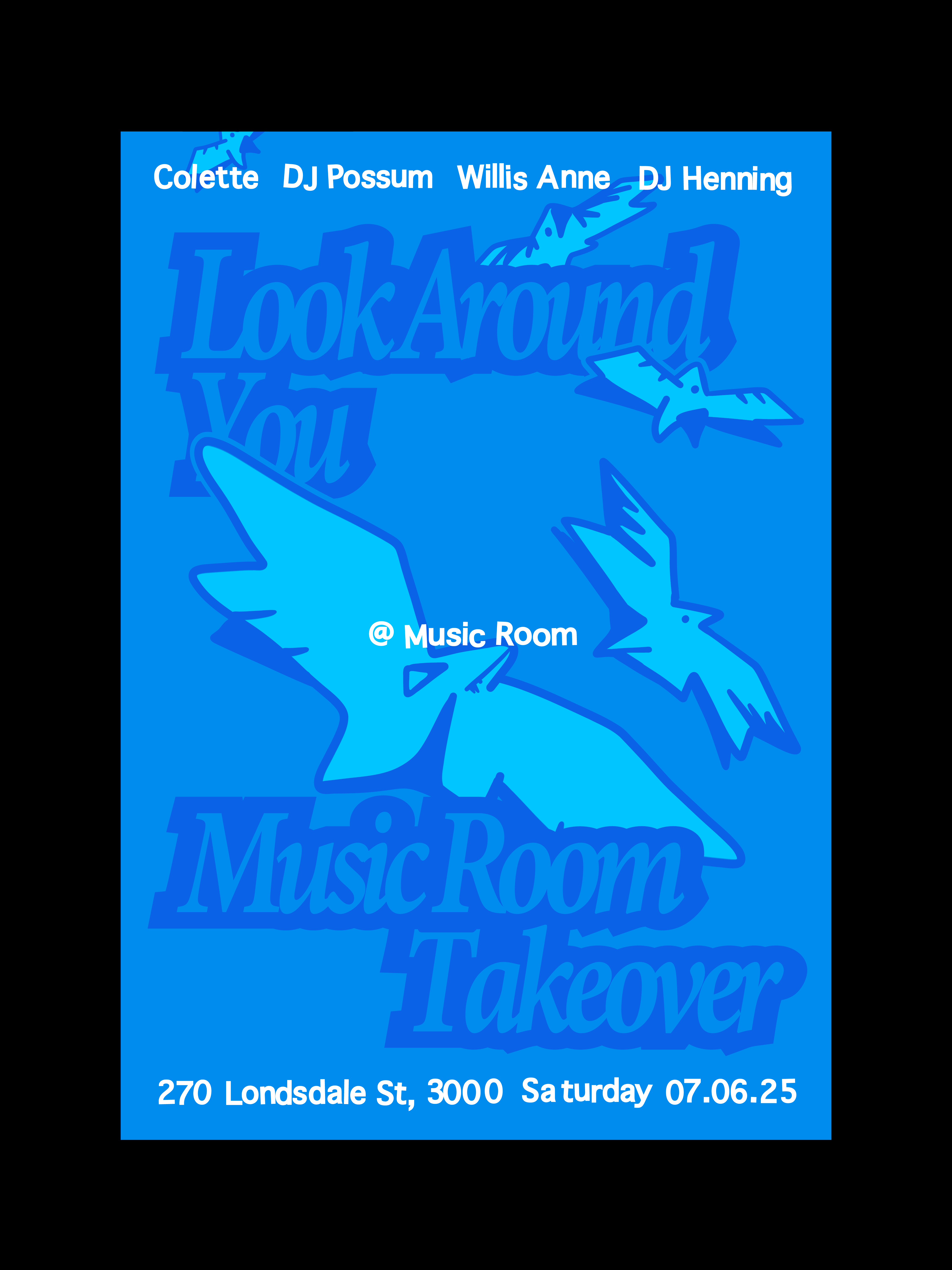Look Around You is an indie events promoter based in Melbourne (Naarm), operating as a community-focused collective that celebrates local and diverse talent. Rather than relying on rigid branding, Look Around You prioritises connection, inclusivity, and the shared experience of live music and creative events.